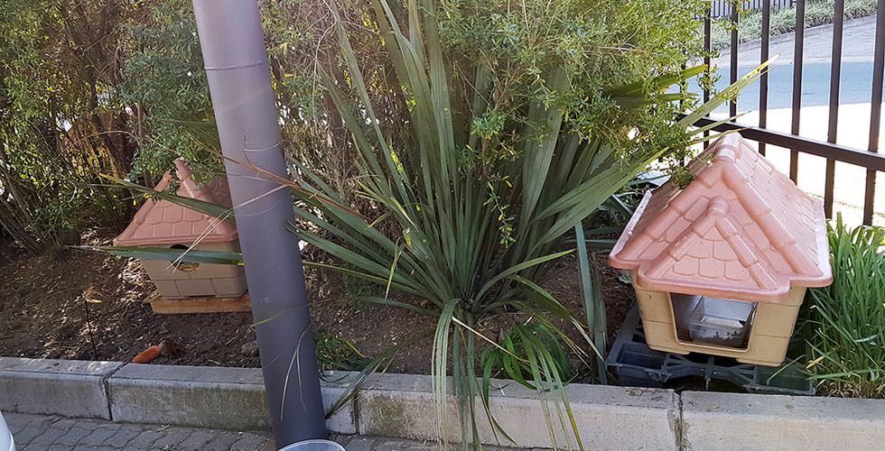 Thanks to the proactive kindness of owners Jeannette and Lars, and the team at Hair Health & Beauty in the Linbro Business Park, Sandton, a colony of feral cats are being cared for. After the arrival of the first cat, who now lives in style inside the warehouse where she is adored by visiting customers, others arrived. Jeannette set up a feeding and neutering programme, and put up warm shelters and feeding stations for the cats around Hair Health & Beauty’s premises. The colony now numbers around fourteen cats who are well cared for, loved and valued... every cat has been named and many of them have become tame and friendly.