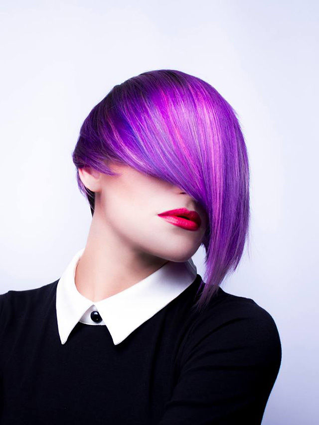 Fashion Cut with Versatility Undercut, Angeled Shape, Multi-Tonal Hues of Purples, Pinks, Platinum & Blues