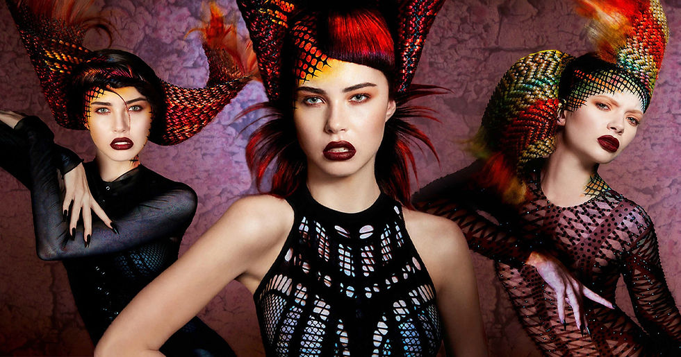 This collection draws inspiration from mythology and futurism, merging ancient war goddess energy with cybernetic rebellion.Each look is an Armor of artistry, sculpted with extreme braiding, directional netting, and heat-toned colour gradients that burn from ember orange to deep volcanic reds.The silhouettes are bold and architectural, defying gravity and convention.Precision panel work and net-like textures challenge the boundaries between hair and headpiece, pushing hairstyling into pure sculpture.The collection showcases a fusion of traditional braiding craftsmanship with high-fashion edge, offering a visual dialogue between chaos and control, softness and strength.Our models become warriors of the avant-garde—each one unique, yet part of a connected narrative.